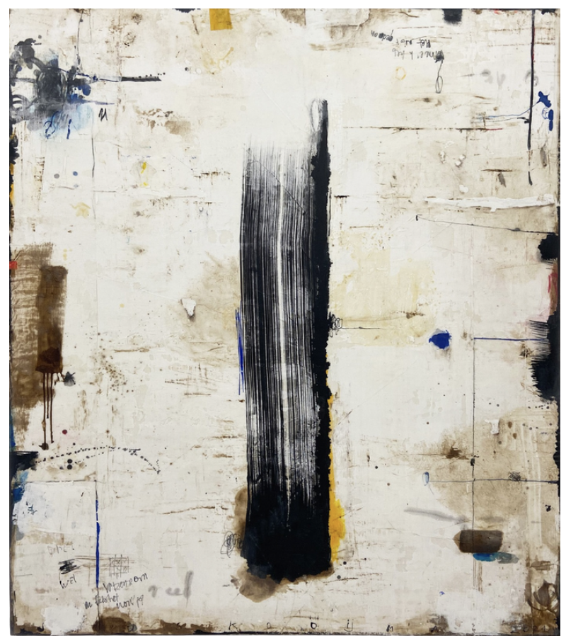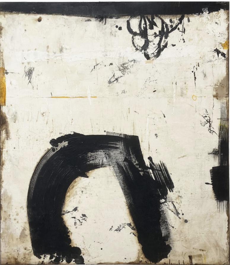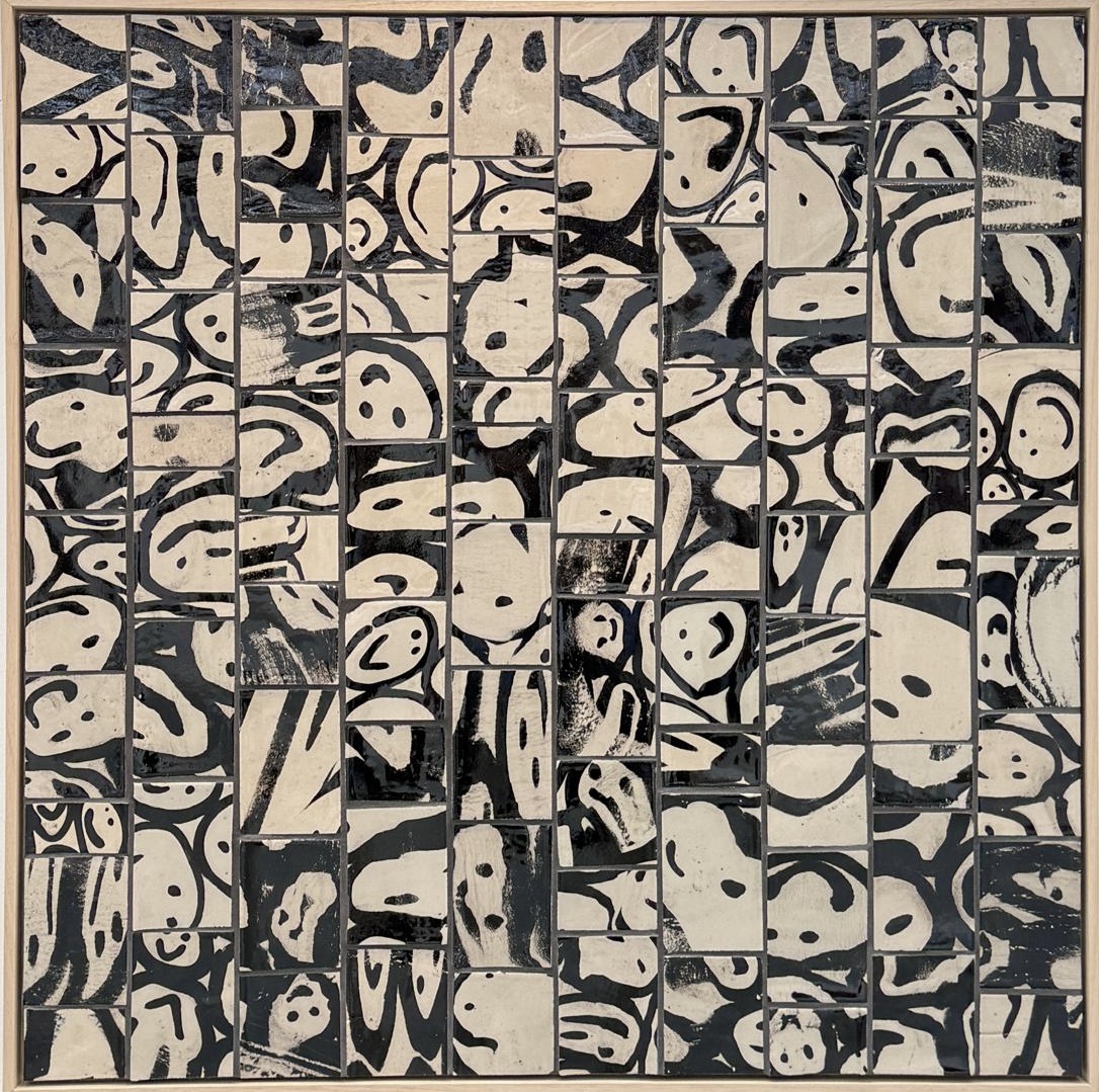 Hand clayed ceramic (black clay in white clay) in wooden frame, 2025.