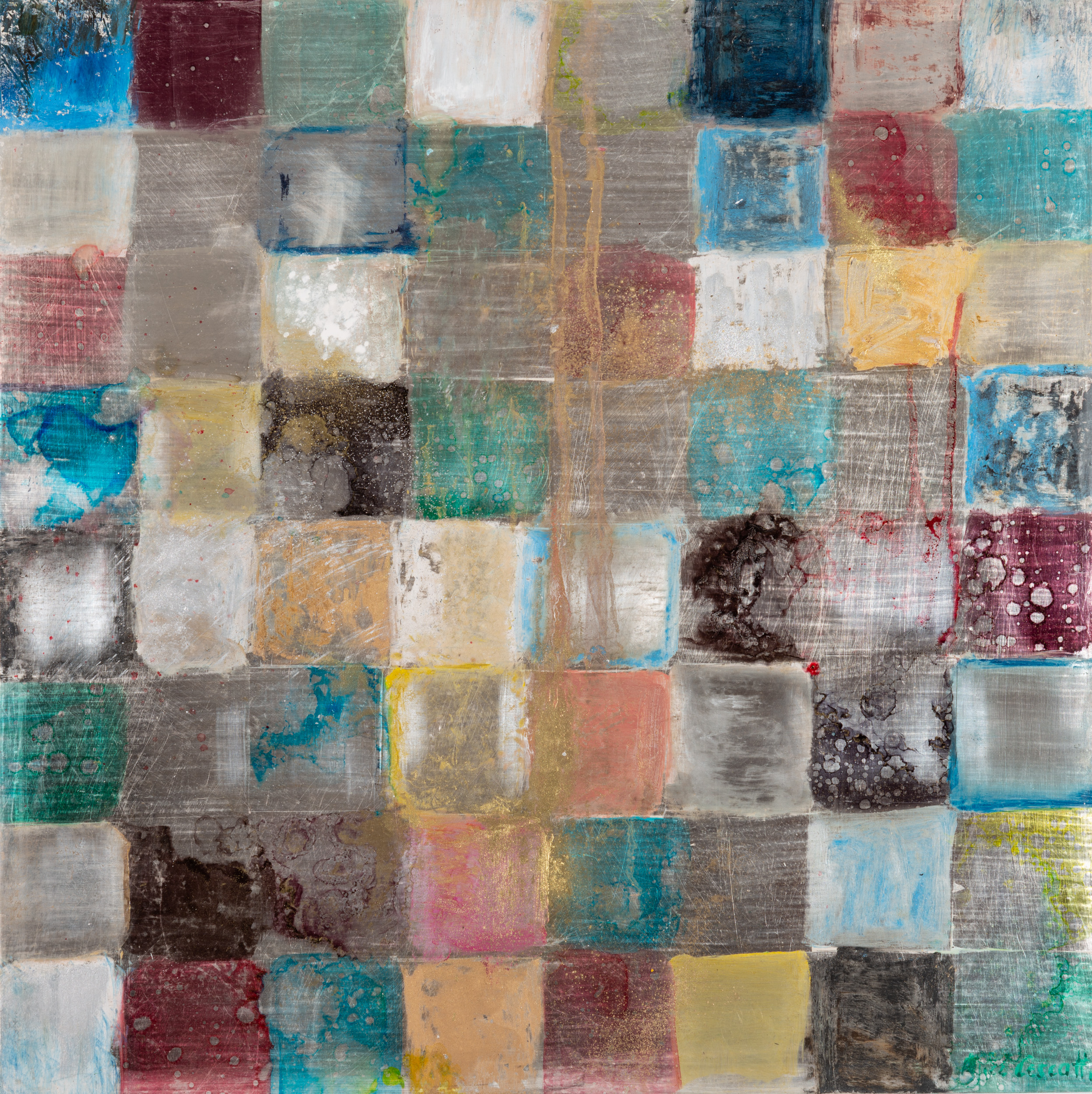 Paneel met zilverfolie geëtst.