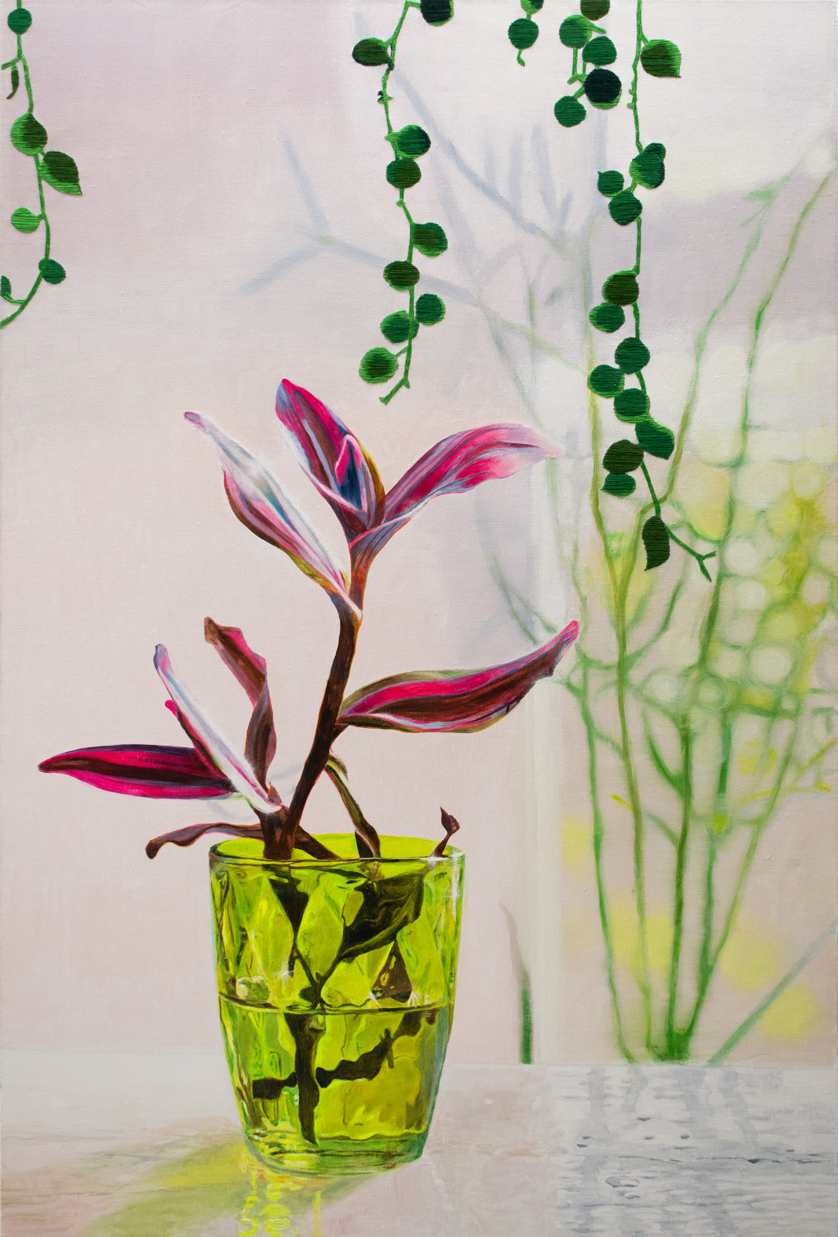 Olieverf op doek & borduurwerk.
