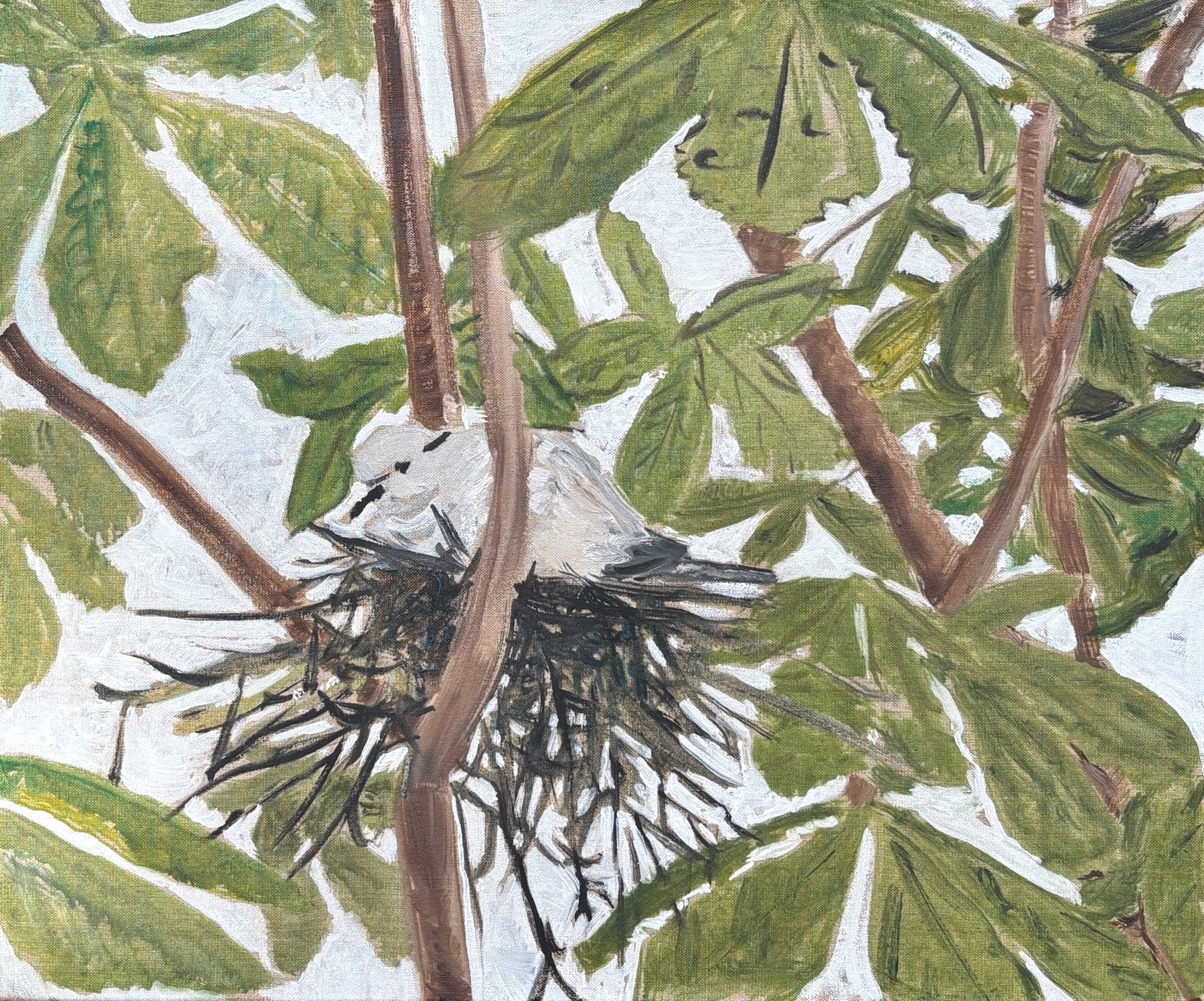 Vogel op nest tussen bladeren