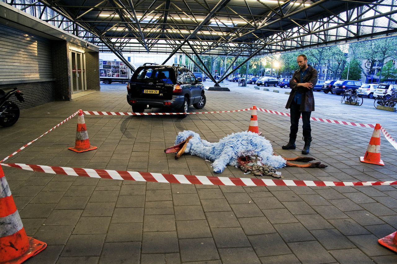 Een jaar later haalde Bart Janssen weer een gedurfde stunt uit, dit keer niet met een overleden huisdier, maar met het iconische kinderfiguur Pino uit Sesamstraat. Buiten op de stoep, voor de ingang van de beurs, lag de door een auto aangereden Pino. Geen enkele bezoeker kon om het lijk van Pino heen. Met deze provocerende installatie wilde Janssen aandacht vragen voor de bedreigende natuurreservaten, die steeds meer plaats moeten maken voor snelwegen. Volgens de kunstenaar was Pino de laatste vogel die op een mooie, onschuldige manier zou kunnen sterven, maar helaas werd hij slachtoffer van de oprukkende beschaving.
